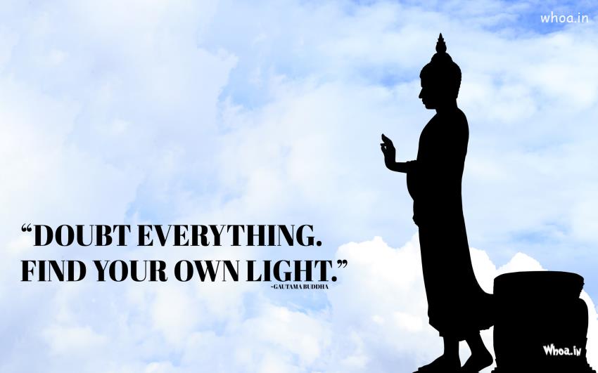 Lord Buddha Statue with Quotes like Doubt Everything Find Your Own Light HD Wallpaper,Lord Buddha HD Wallpaper,Lord Buddha Quotes HD Wallpaper