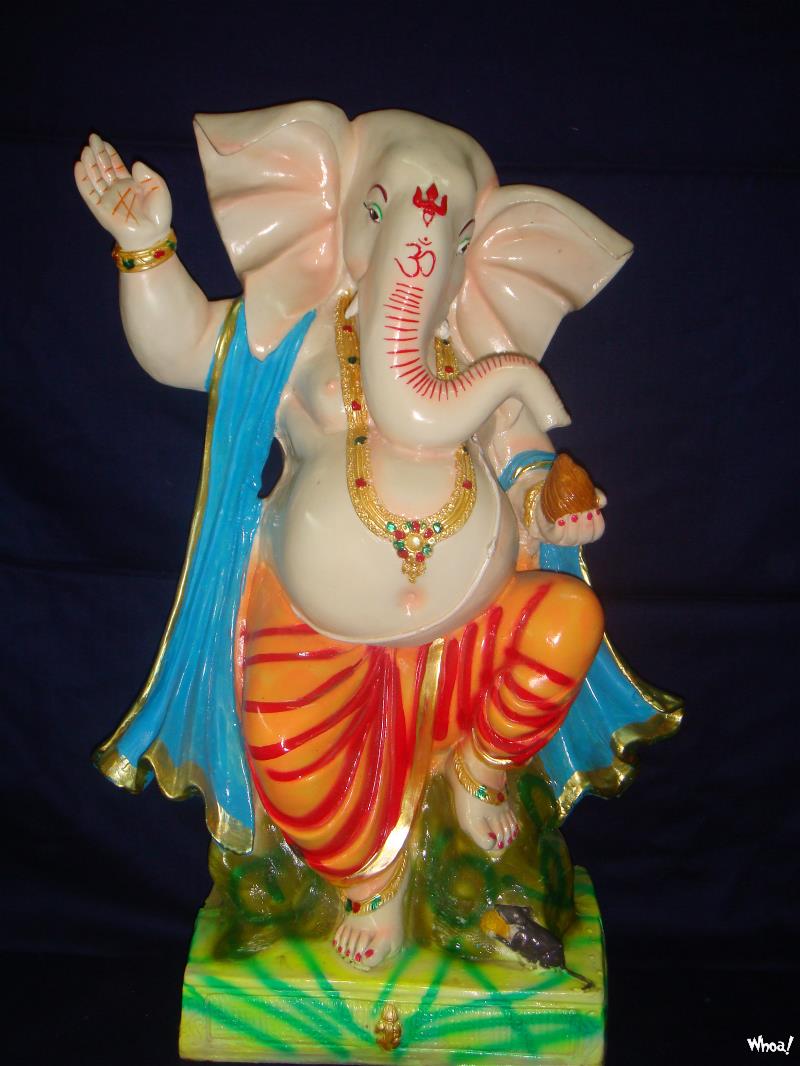 Lord Ganesha Standing Statue In Dark Background HD Wallpapers For Desktop Background
