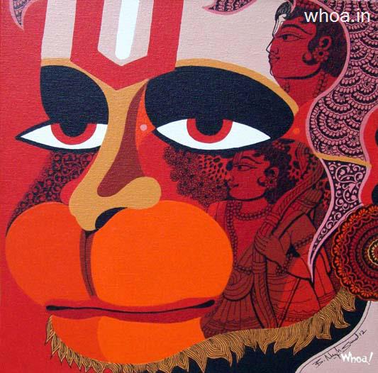 Paint Art of Lord Hanuman, Red Image of Hanuman, one of best wallpaper of hanuman