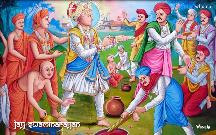 Lord Swaminarayan Play Holi with Village People HD Wallpaper