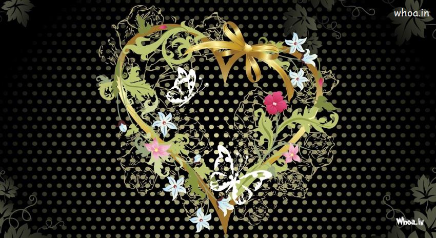 Creative Love Flower Heart With Yellow Ribbon HD Wallpaper