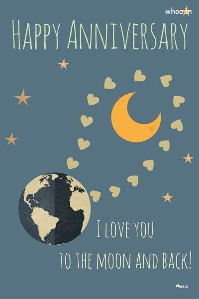 The beautiful Anniversary wishing image for your better half with lovely massage that I love you to the moon and back