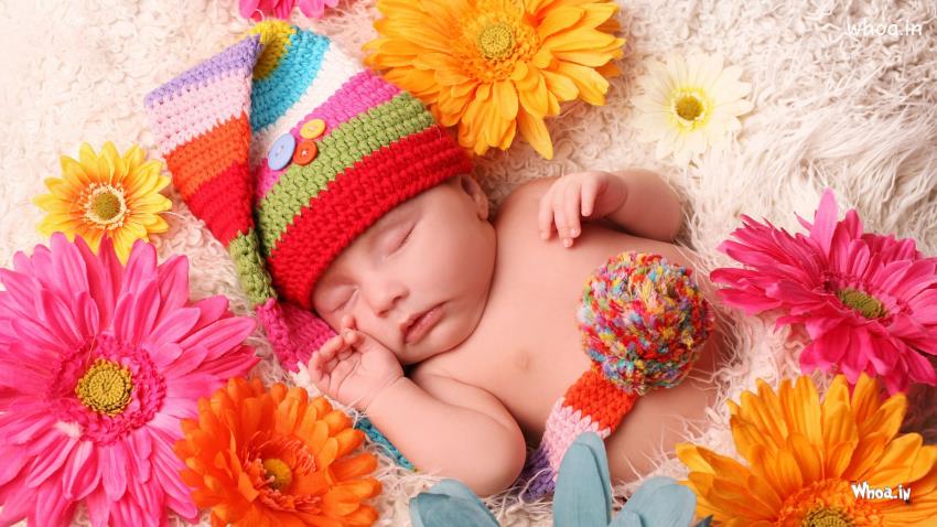Newborn Cute Baby Sleeping with Gerbera Flower HD Baby Sleep Wallpaper,Newborn Baby Sleep Wallpaper,Baby Sleep Image,Cute Wallpaper