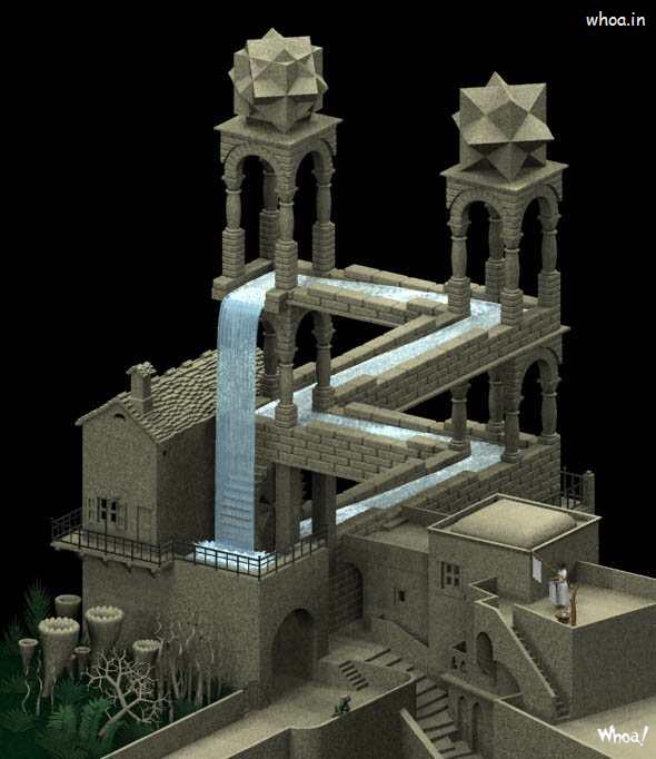 optical illusions image of building, falling water illusion free download. amazing illusion