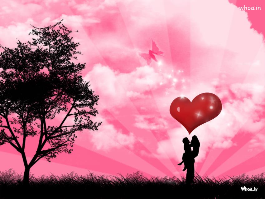 Natural Pink Background with Beautiful Love Couple HD Wallpaper