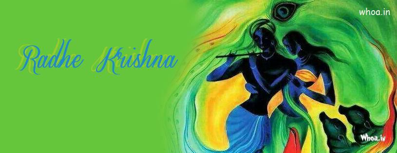 radhe krishna art fb cover with green background, Lord Krishna, Bal Krishna, Murlidhar HD FB Cover For Free Downlod