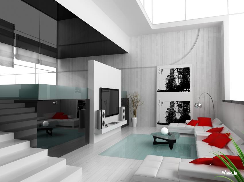 Red and White Sofa for White Living Room Design HD Wallpaper