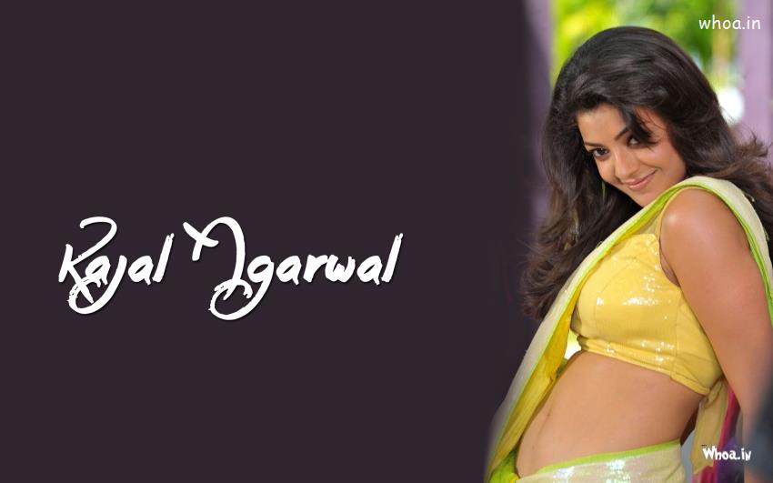 Sexy Kajal Agarwal in Yellow Saree Wallpaper ,Bollywood And Tollywood Actress Kajal Agarwal Hot, Beautiful, Sexy Photo of Kajal Free Download