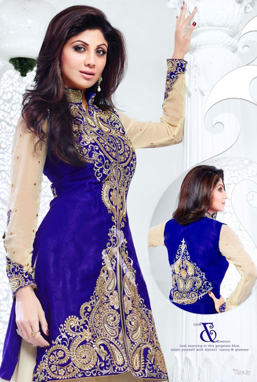 Shilpa Shetty Blue Traditional Dress HD Widescreen Background Wallpaper,Bollywood Actress Images