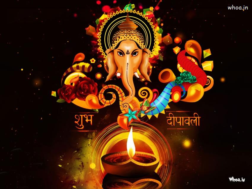 Shubh Deepawali with Lord Ganesha HD Greetings Wallpaper,No Crackers Only Diya HD Wallpaper,Happy Green Diwali HD Wallpaper,Diwali Greetings Wallpaper