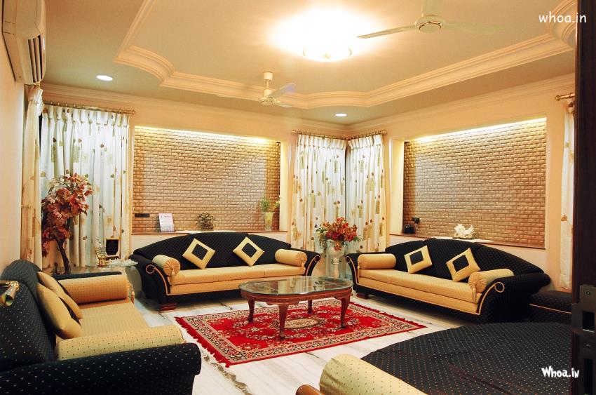 Square Shape Black and Goldan color Sofa With Interior Design Wallpaper