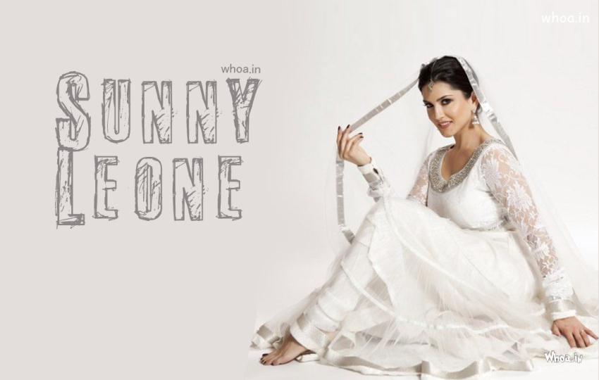Sunny Leone in White Dress, Makeup Fully Indian Style, Full HD Wallpaper of Sunny Leone with Indian style.