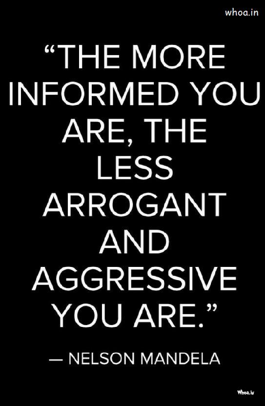 Download the HD image of education qoute by Nelson Mandela, " The more informed you are, the less arrogant and aggressive you are"