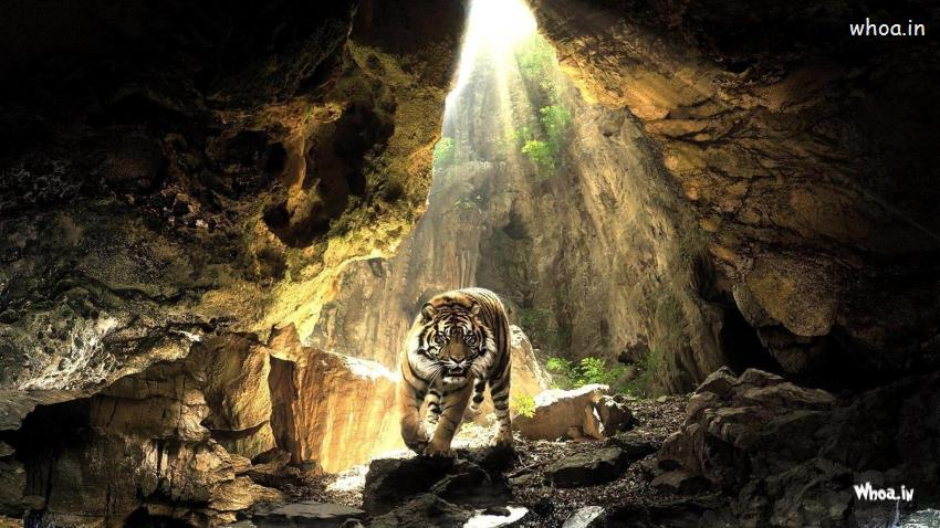 Tiger Wallpaper HD,Tiger Walking in a Cave Wallpaper, Images And Photos of Tiger