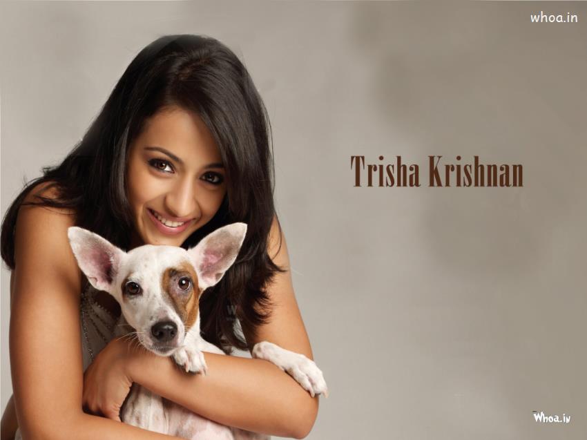 trisha krishnan playing with dogy, trisha krishnan sauth indian and tollywood film actress, hot, bikini phooshoots and HD wallpapers