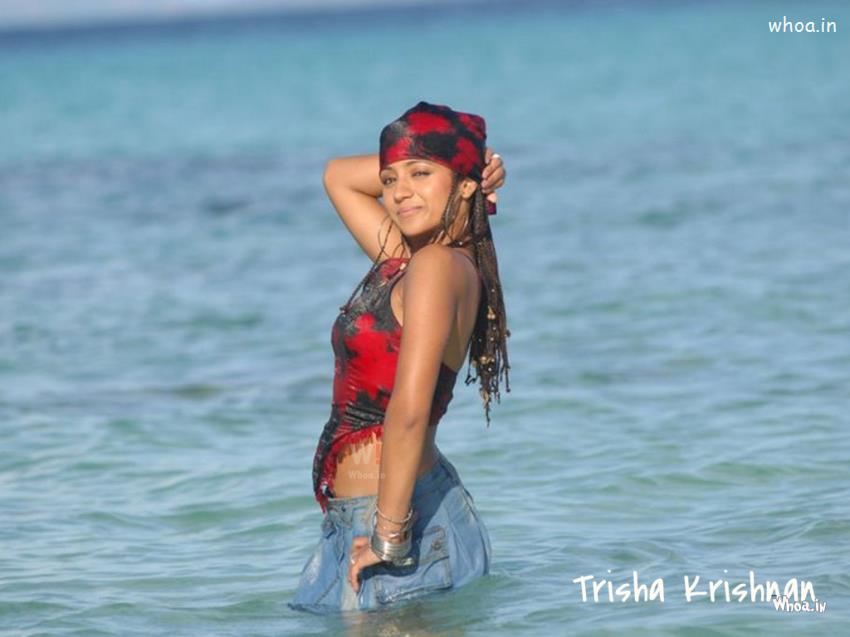 trisha krishnan standing on beach water, trisha krishnan sauth indian and tollywood film actress, hot, bikini phooshoots and HD wallpapers