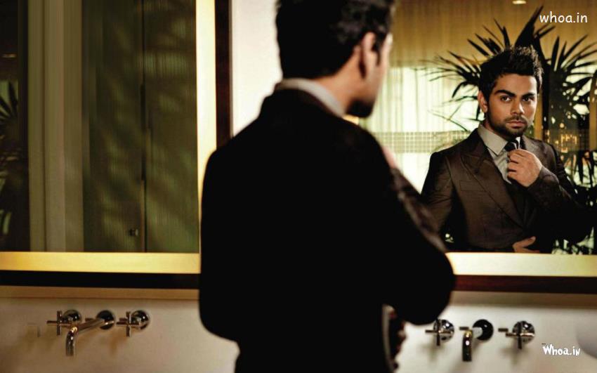 Virat Kohli Black Suit in Front of the Mirror HD Wallpaper, Indian Cricketre Wallpaper, Virat Kohli Wallpaper, Indian Cricket Player Wallpaper