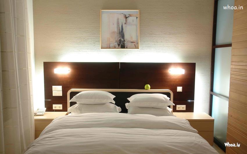White Comfortable Bedroom with a Painting in Living Room Decoration Wallpaper