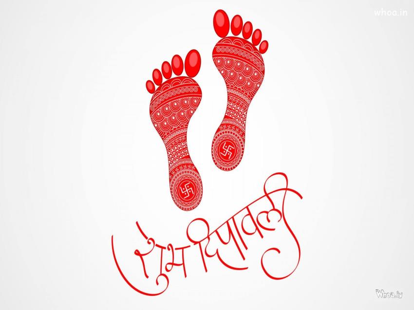 Wish U Shubh Deepawali with Goddess Lakshmi Footprint HD Wallpaper,Shubh Diwali HD Wallpaper,Wish U Happy Diwali and Blessing Quotes HD Wallpaper