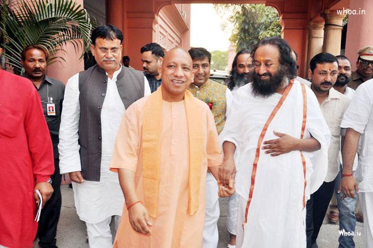 Yogi Aadityanath With Shri Shri Ravishankar Maharaj